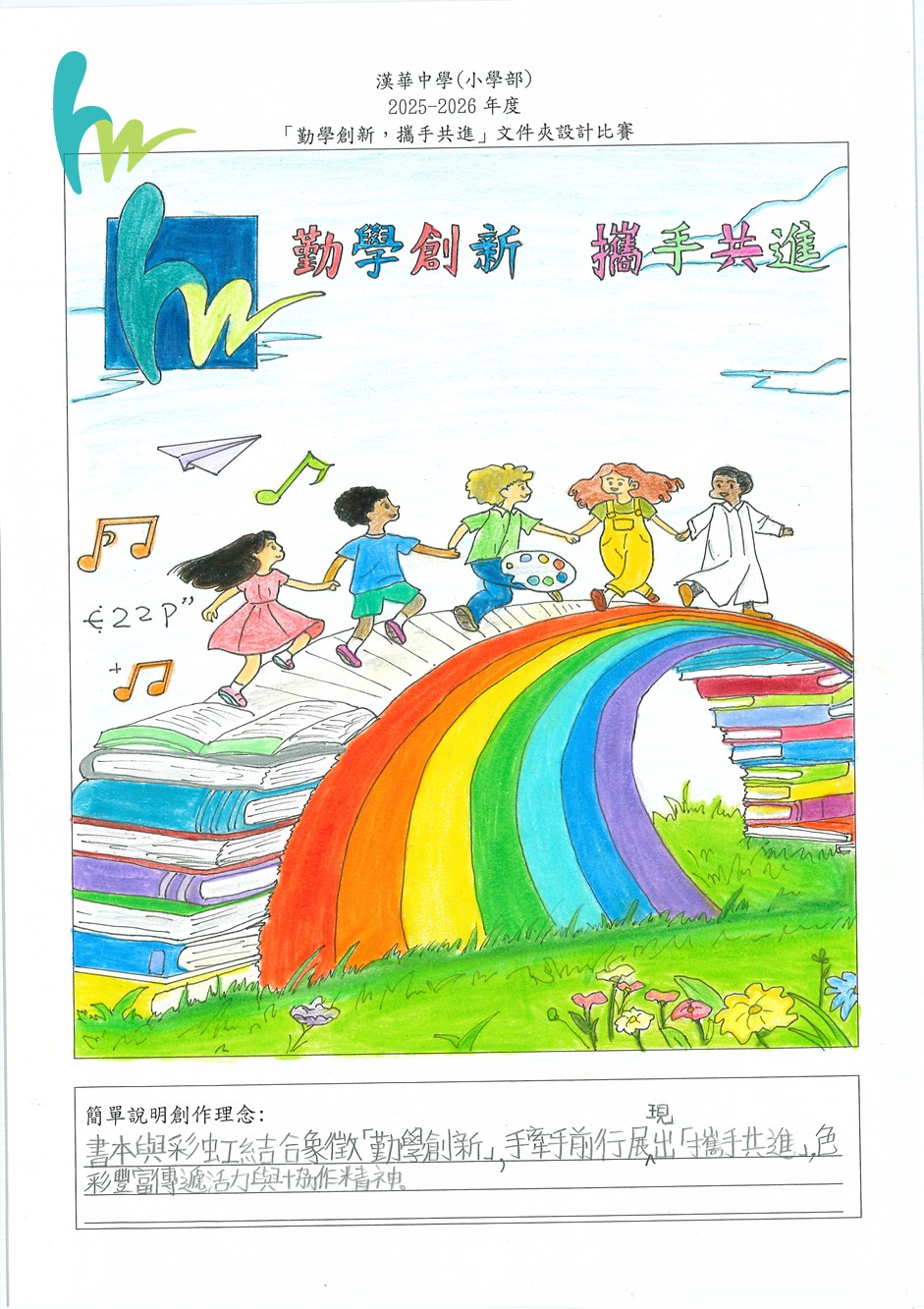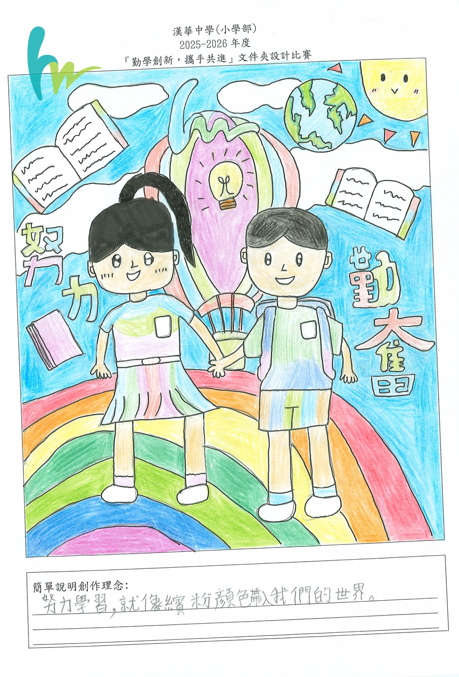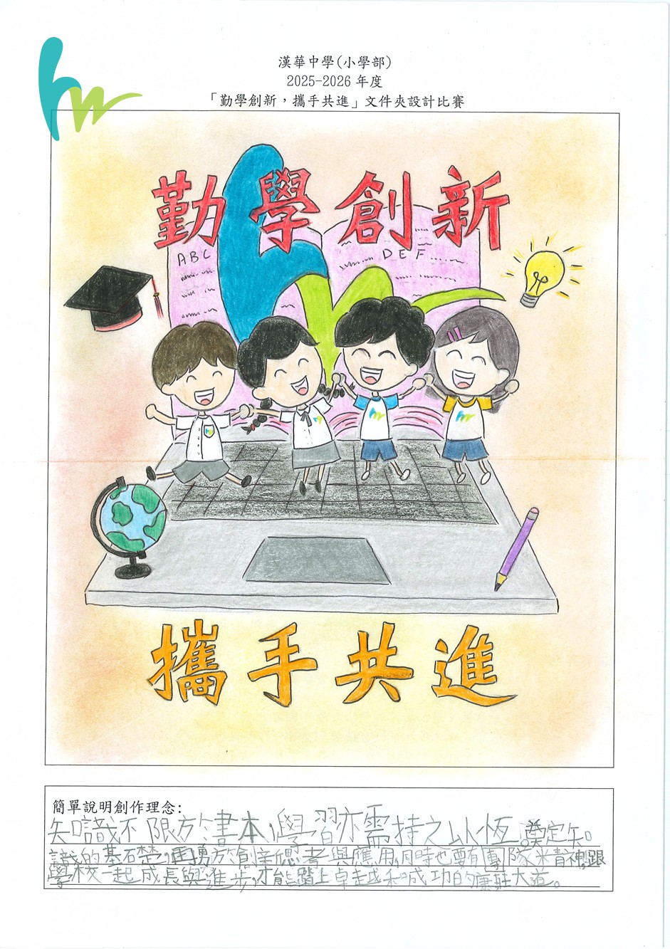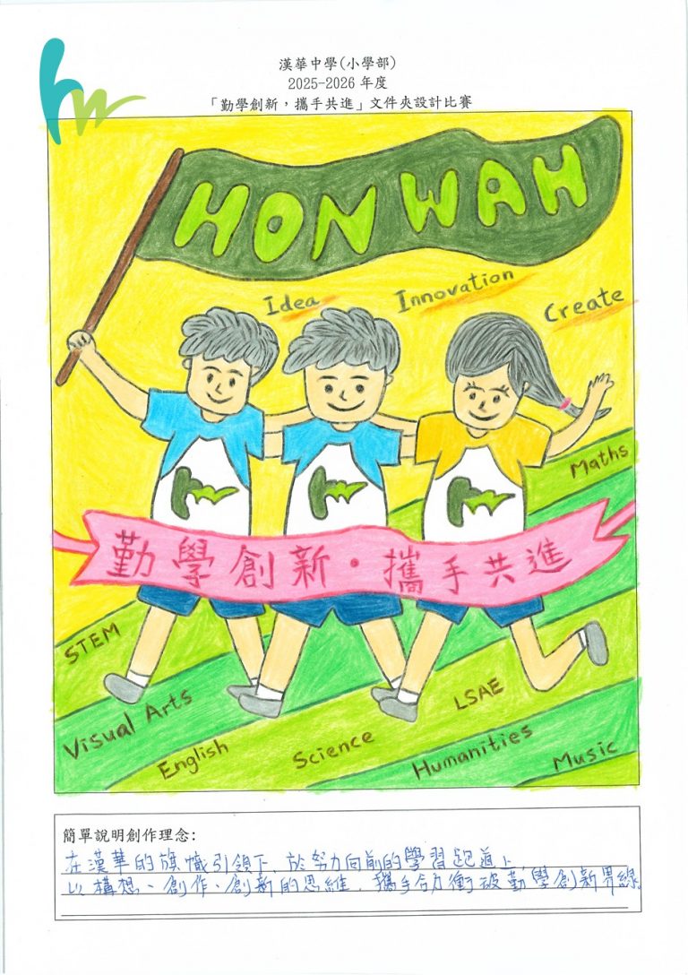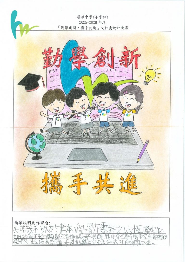 本校本年度主題是「勤學創新,攜手共進」,為了宣揚黄色网站正能量,建立自信心,舉行了「勤學創新,攜手共進」文件夾設計比賽。比賽反應十分熱烈。有關比賽結果如下: