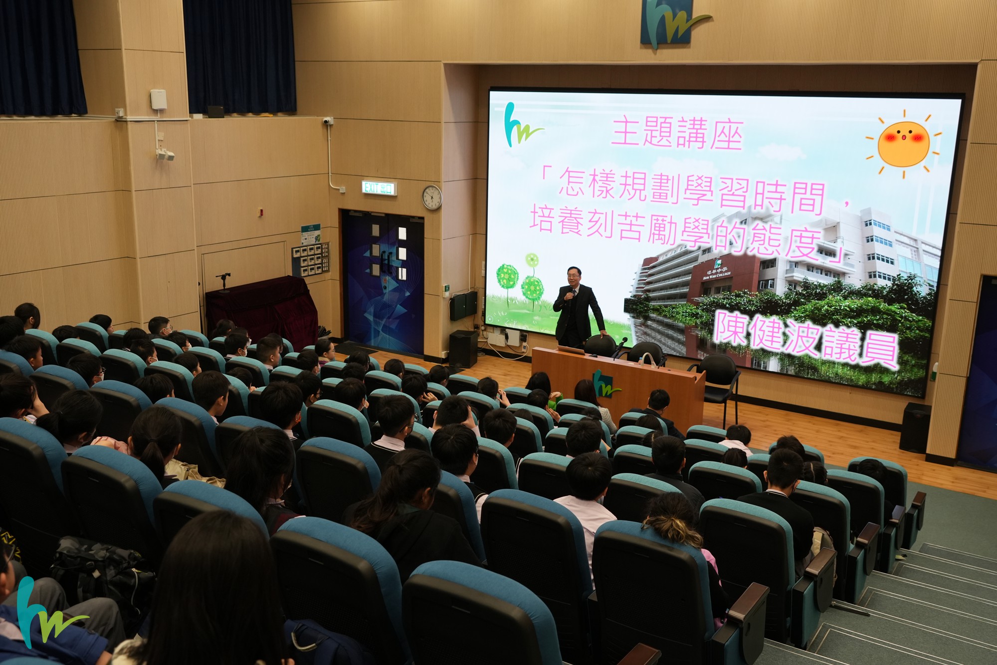 本校十分榮幸於3月12日邀請到立法會陳健波議員到校為小五、小六學生進行講座,講座主題為「怎樣規劃學習時間,培養刻苦力學的態度」。陳議員以輕鬆幽默的形式與同學分享他的成功之路,並勸勉同學遇到困難,不要放棄。學生們十分投入,獲益良多。