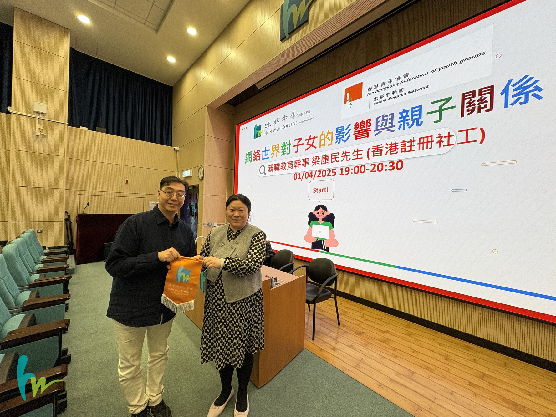 本校於4月1日邀請了香港青年協會家長全動網親戚教育幹事梁康民先生以「網絡世界對子女的影響與親子溝通」為主題進行家長講座。透過是次講座,讓家長明白子女使用網絡及智能產品最新現象、危與機及成長的需要,同時也給予支援讓家長認識教導子女正確使用網絡的原則及預防網絡成癮,並從中學習舆子女建立正面溝通的親子相處模式。