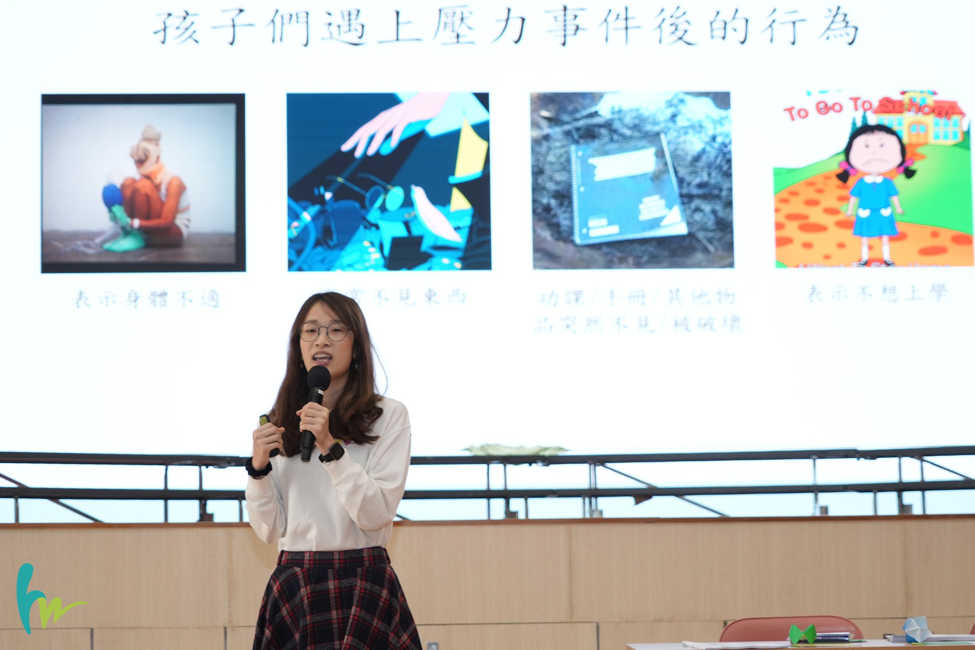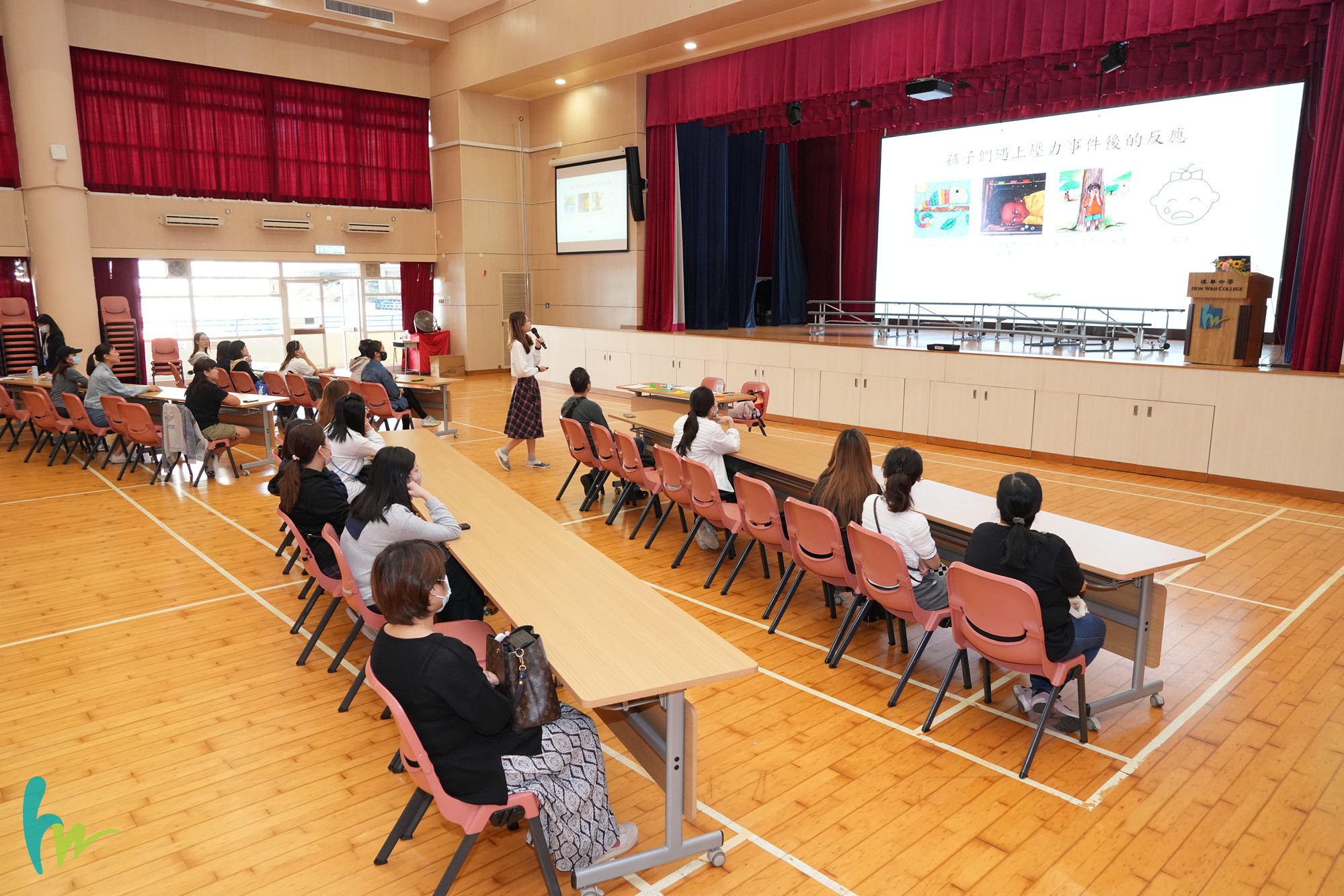 為了讓家長了解幫助自己及子女減壓、應對負面情緒的技巧,本校邀請了梁文榕姑娘(樂旼共融教育有限公司註冊社工)於11月22日舉行了「藝術治療之情緒表達」小一至小二家長工作坊,讓新來港學童家長了解如何發現子女面對壓力時的行為及掌握回應子女情緒的方法,並了解如何運用藝術治療作為介入手法,幫助子女處理及表達情緒、緩解壓力。