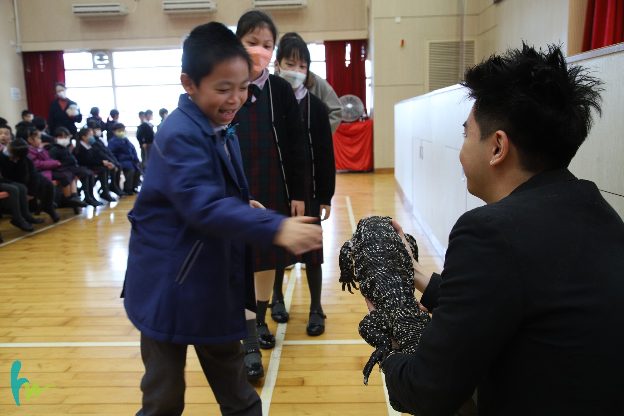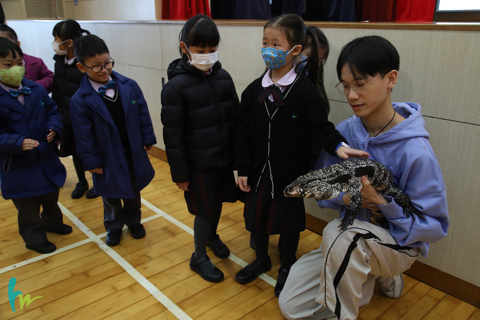 為了讓同學了解世界的瀕危爬蟲動物及學懂愛護動物的重要性,本校於1月29日邀請到大自然兩棲及爬蟲教育有限公司創辦人黃浩軒先生到校進行講座。黃先生帶同兩種爬蟲動物到校與同學進行互動分享,同學反應十分熱烈。