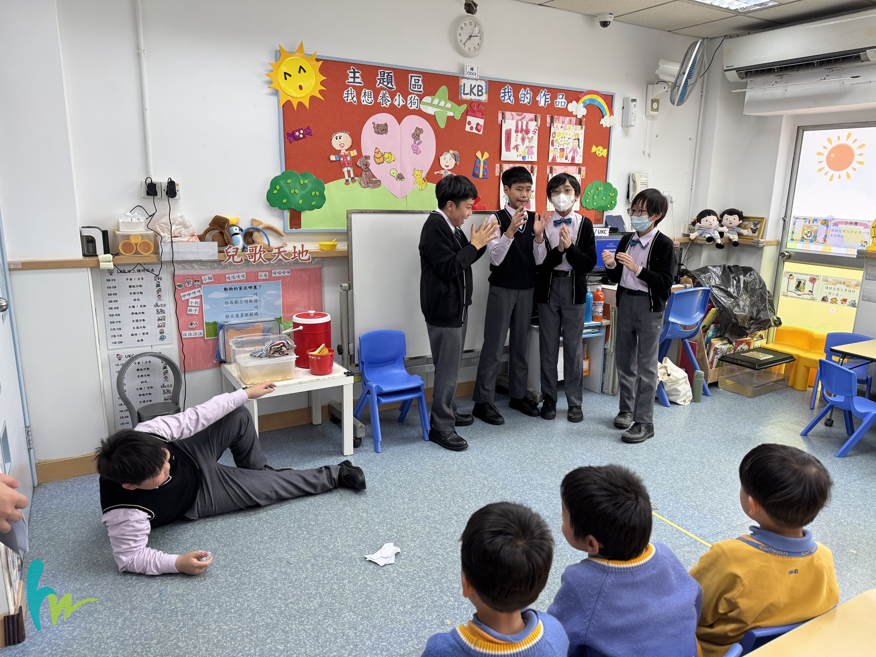 為了培養學生的服務精神,本校於4月1日安排了小六學生探訪新翠培元幼稚園、宣道會上書房中英文幼稚園及迦南幼稚園 (小西灣)。學生在活動過程中大顯身手,除了與幼稚園學生玩遊戲外,還進行了不同的表演環節,十分精彩啊!活動中,學生學會了關心及服務社區不同人士,並培養樂於助人的態度。