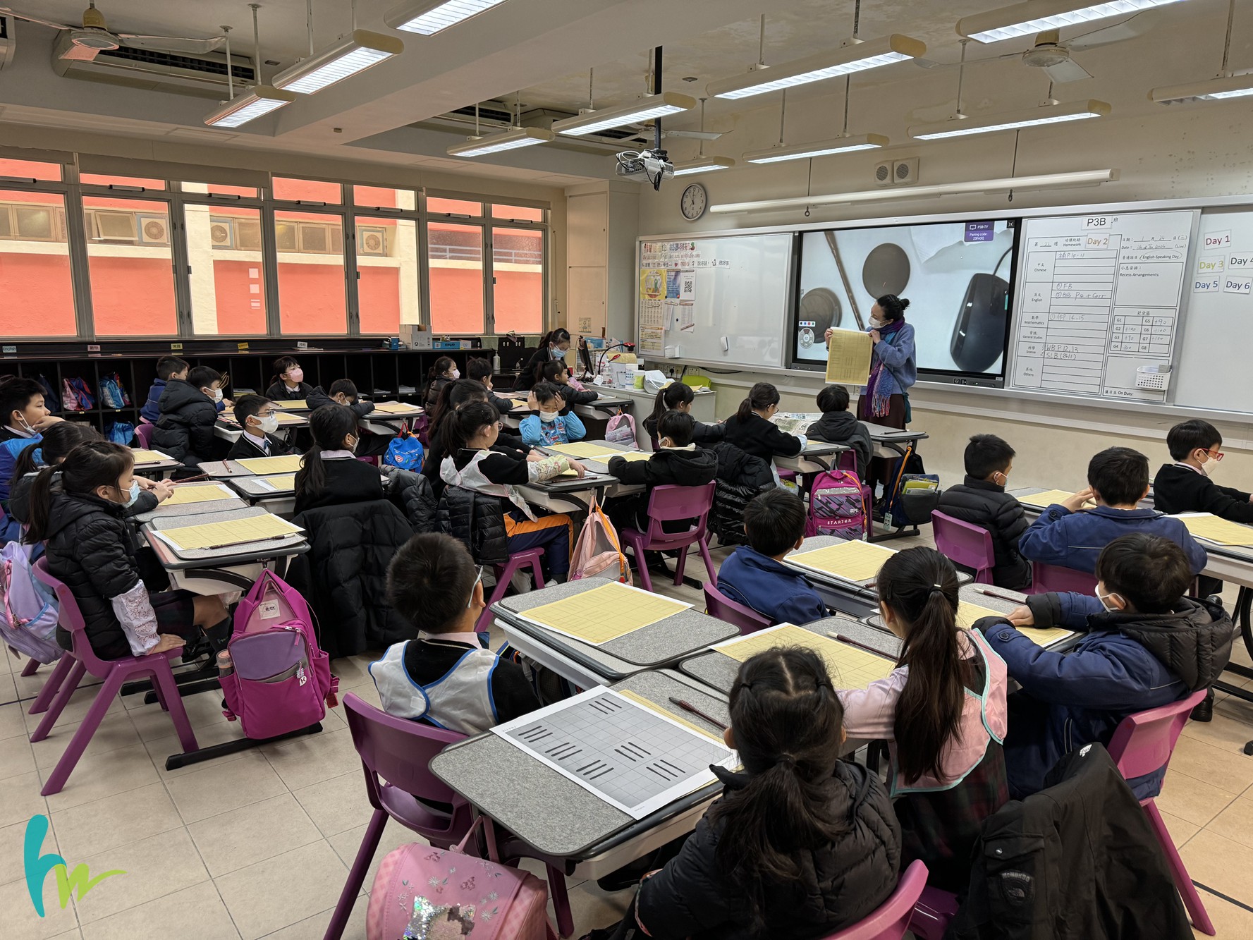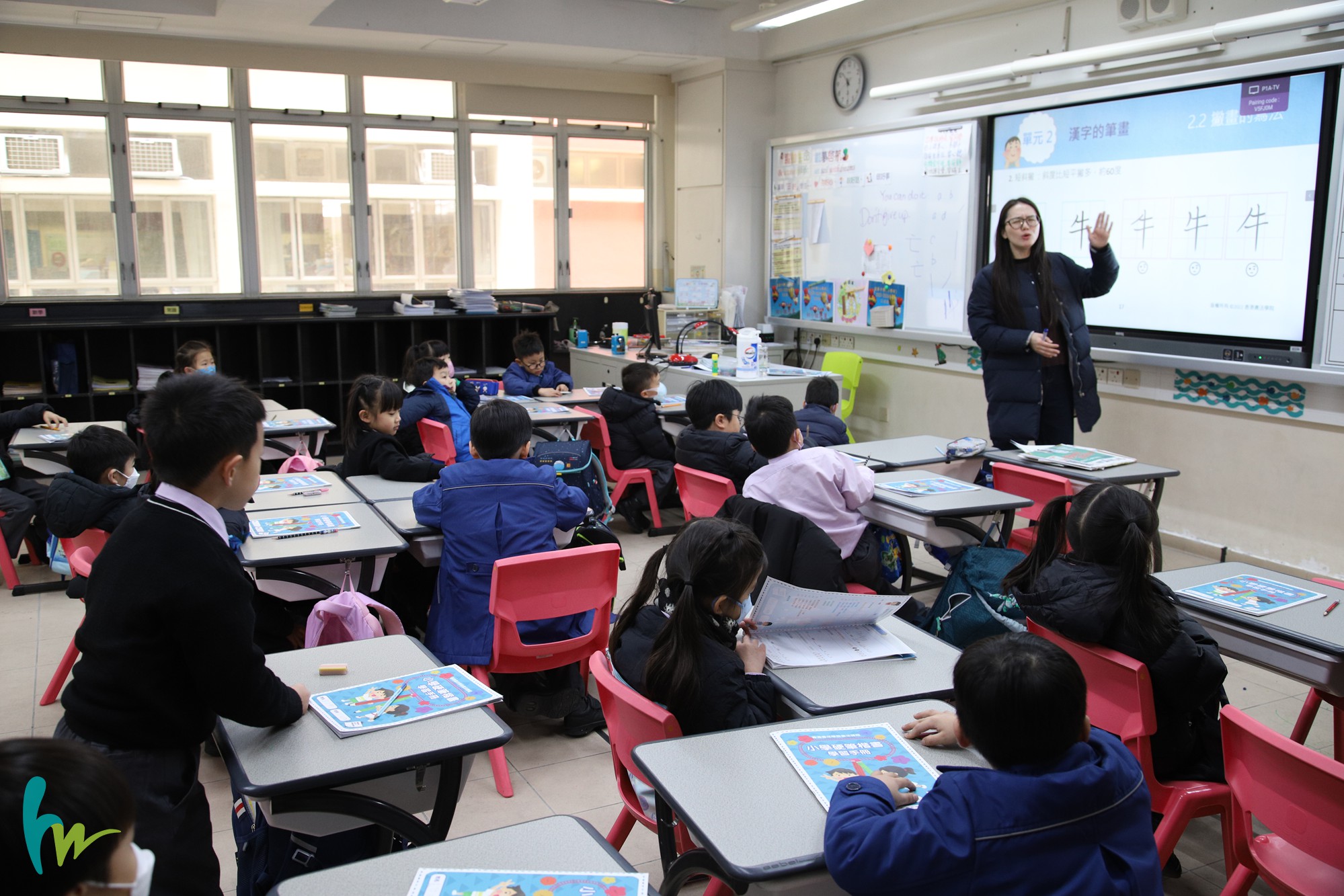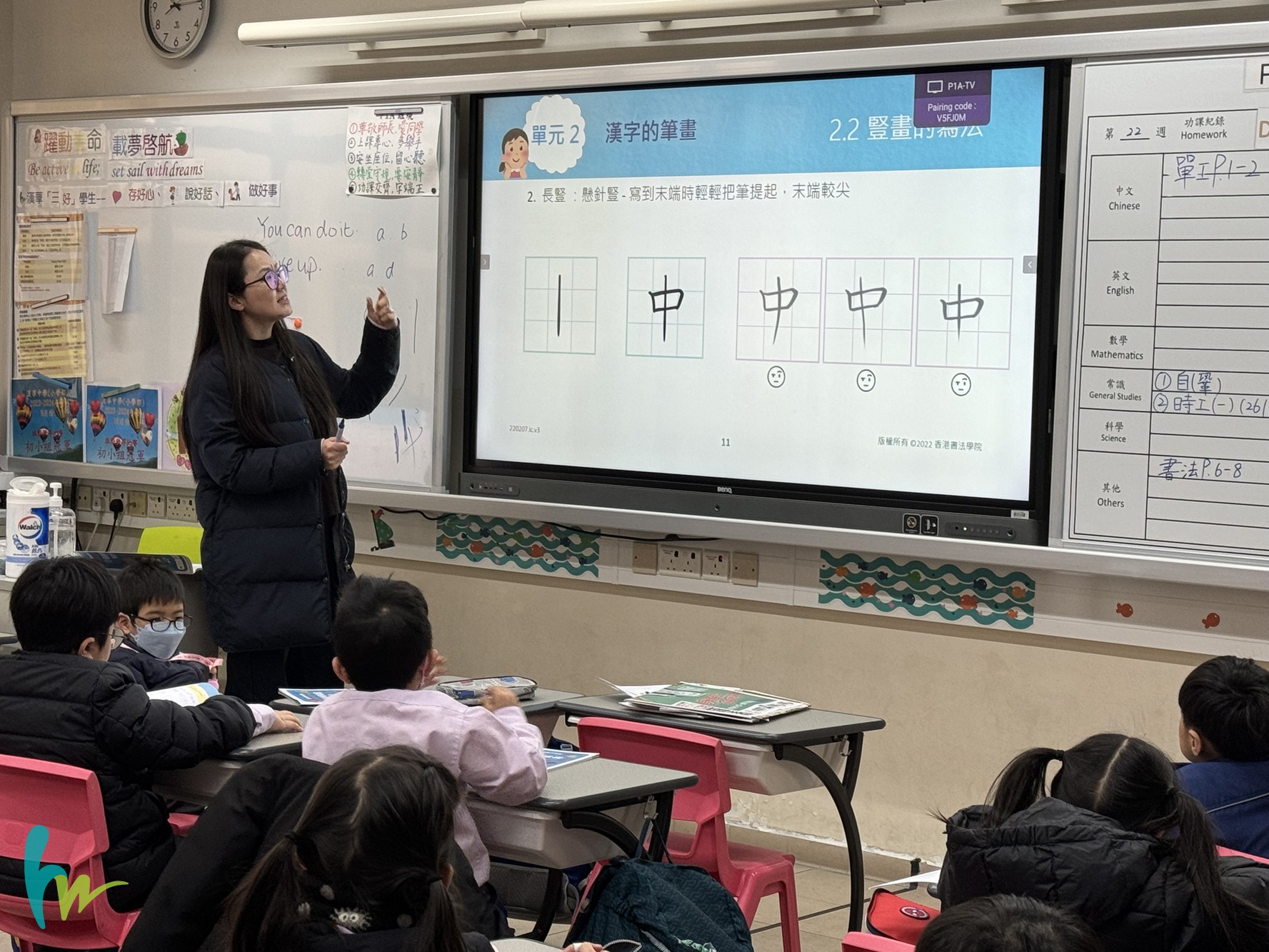 本校老師按香港書法學院所編輯之書法基礎課程—W1硬筆楷書(小一)教材在校內教授小一學生學習寫書法。本校老師指導學生正確的坐姿、執筆和運筆法,並教授學生認識筆順、漢字筆畫、字形結構及不同書法書體。透過書法課程,學生能掌握基本書寫技能:正確的坐姿、執筆和運筆法,加深對筆順和字形結構的認識,更能全面認識中國書法藝術。