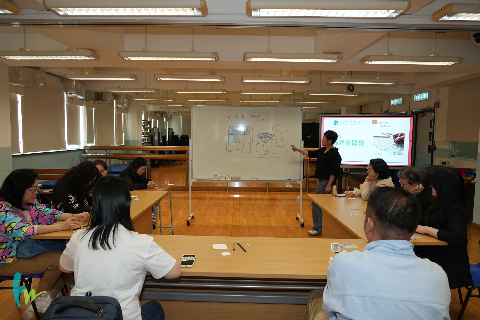 v 本校於4月7日舉行了小五小六家長Power-Up工作坊及副校長channel,主題為「禪繞畫家長減壓工作坊」。講者梁康民先生( 香港註冊社工) (親職教育幹事) (親子教育專欄作者)透過透過禪繞畫技法,教導家長繪畫簡單而精美的線條與圖案,讓家長在創作過程中學習專注與放鬆,從而舒緩情緒,達到減壓效果。此工作坊特別設計,旨在幫助家長保持平和心態,更好地支持孩子適應新環境。最後,歐副校長亦與家長傾談交流,從而加強家校之間的溝通和聯繫。