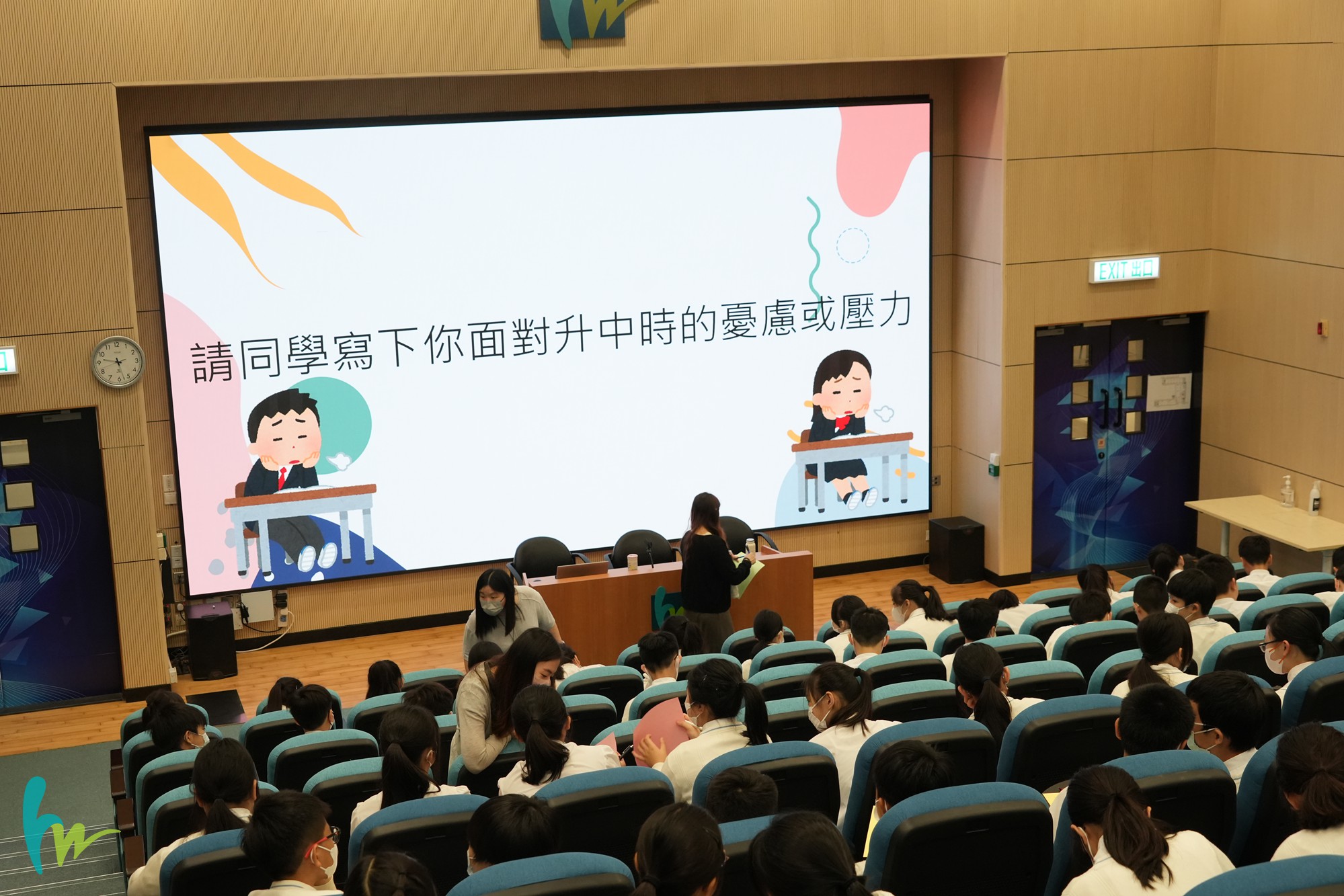 另外,本校為小六學生舉行了小六家長及學生講座—-「升中生活知多點」(由中學部黃佩貞副校長主講)、家長講座—-「踏入新階段:為子女升中作準備」(講者:香港復和綜合服務中心 蒙嘉欣小姐(註冊社工)) 、升中一條龍分享講座及自我管理工作坊,讓家長和學生為中學學習環境的轉變和挑戰作好心理準備,懂得釋放壓力。