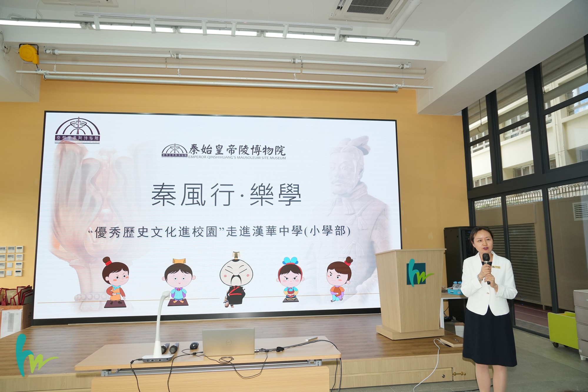本校於6月25日邀請了秦始皇帝陵博物院導師到校進行了小四秦始皇帝陵博物院學習活動。透過學生講座及服裝秀體驗,讓學生從活動中延伸學習及了解秦朝的歷史與出土文物,加深對秦文化的認知,明白秦代在中華文明一體化進程的重要性,並從中學習欣賞與保育,培養愛國情懷。