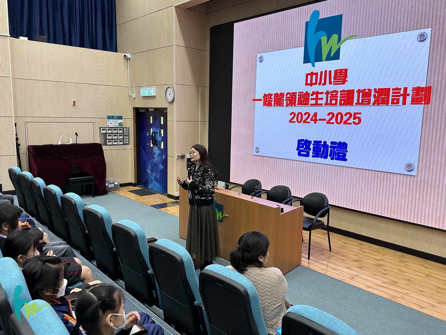 本校推行一條龍學生領袖培養增潤計劃,目的是透過小學至中學階段共12年,以一條龍模式培養品學兼優、有領導才能、有服務精神、有責任心、有承擔的青年學生領袖。透過中小學同學的互相交流,從而增進感情,學習和掌握領袖才能、技巧,並提升同學的學業成績及品行,鼓勵他們成為品學兼優,具領導才能,願意為國家和社會服務的優秀人材。