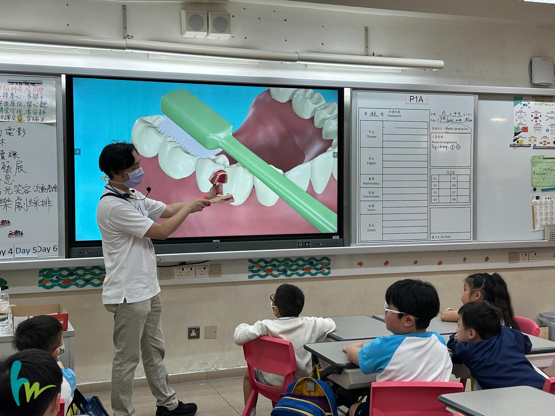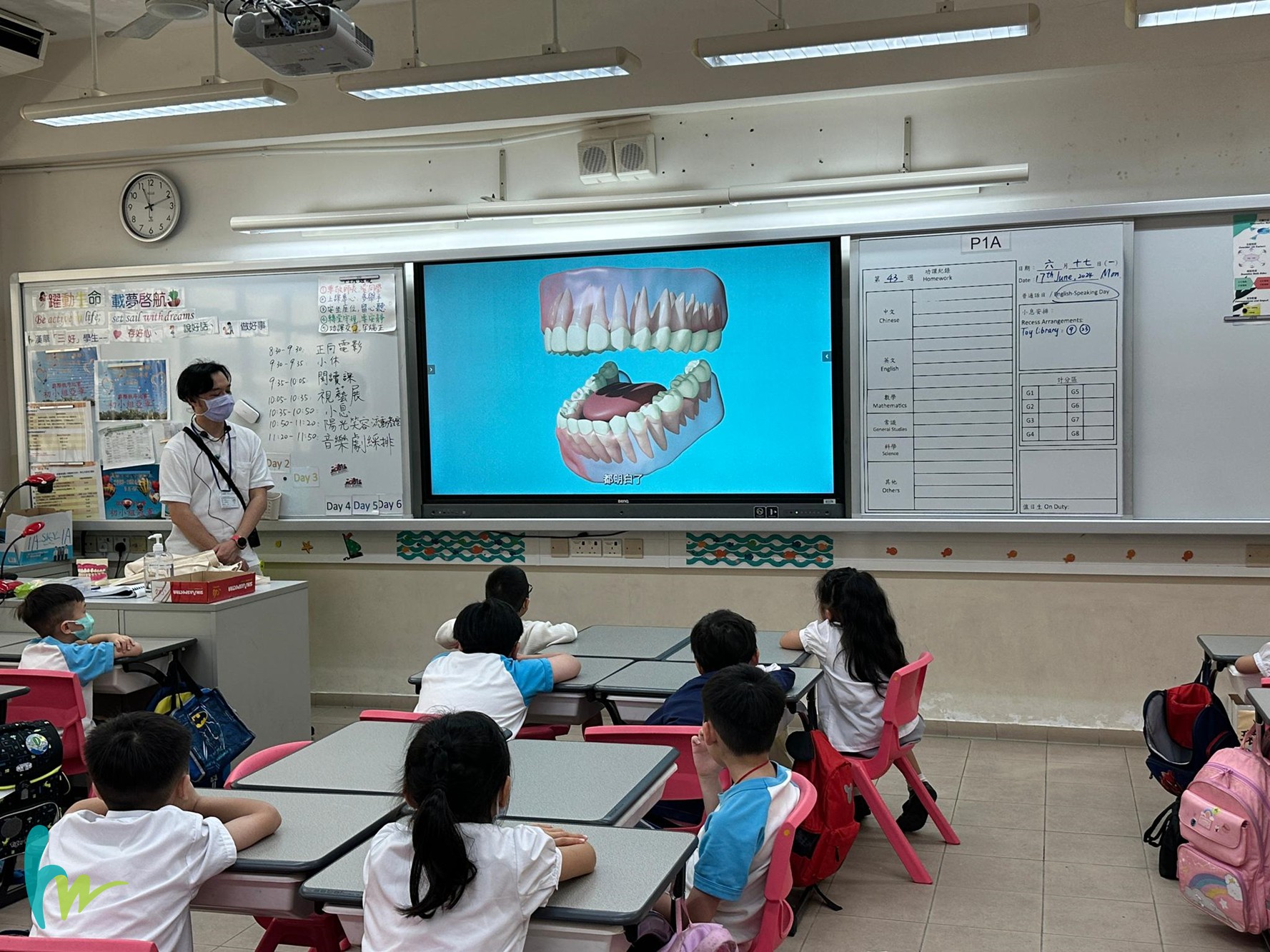 本校於6月17日至6月19日期間進行了「陽光笑容流動教室」活動,讓小一、小三及小五學生透過活動式學習,在愉快、有趣及互動的環境下接受牙科治療師的指導及講解,學習口腔健康知識及提升他們掌握口腔護理的技巧。