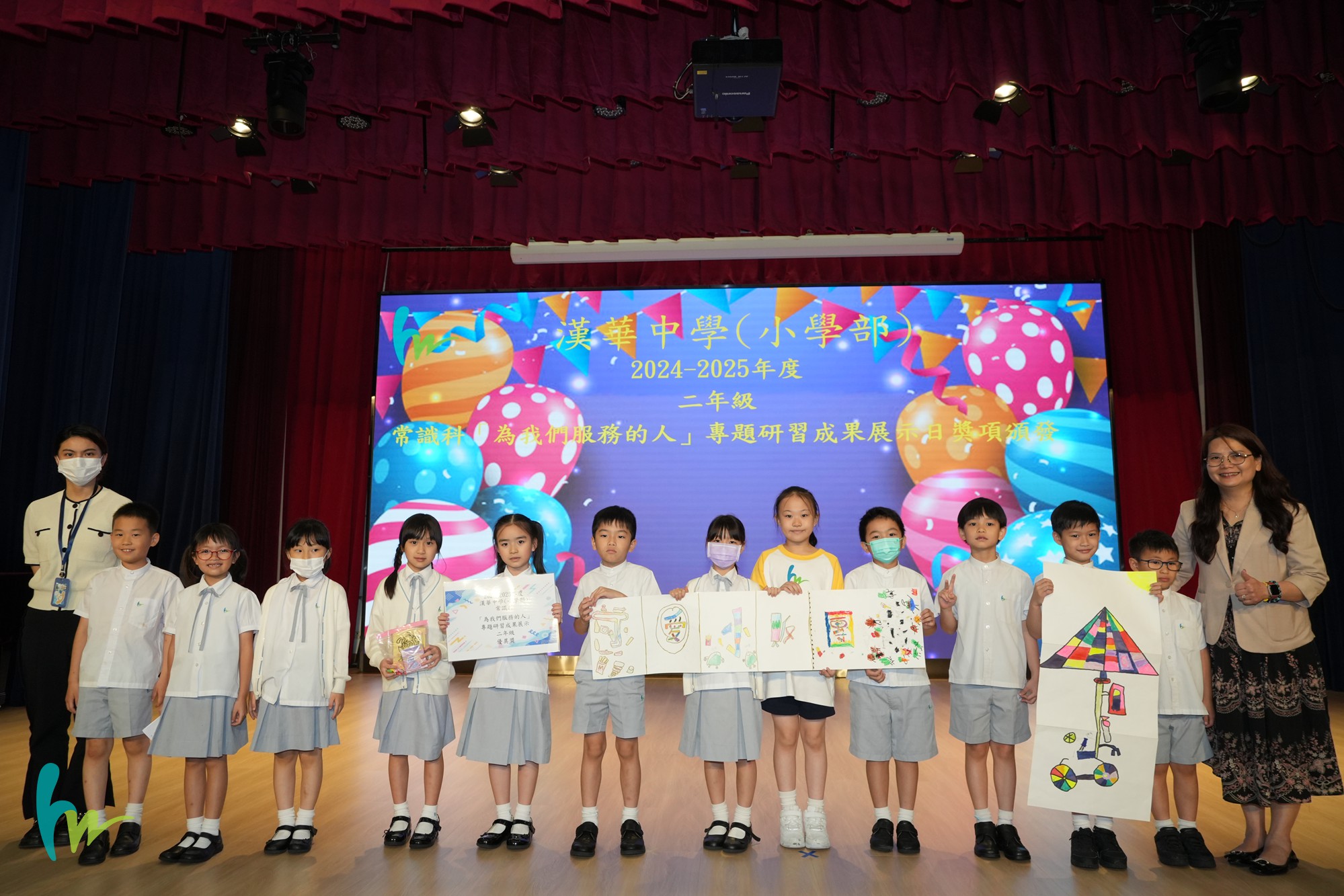 小二級進行了「為我們服務的人」專題研習活動。小二學生透過訪問家長義工認識在社會上不同職業及職能。專題研習過程中,小二學生學會不同人物訪問及匯報技巧,並學會欣賞和感謝為我們服務的人。在5月20日成果展示日當天,小二學生在台上自信地匯報,發揮團隊精神,把研習結果匯報出來。