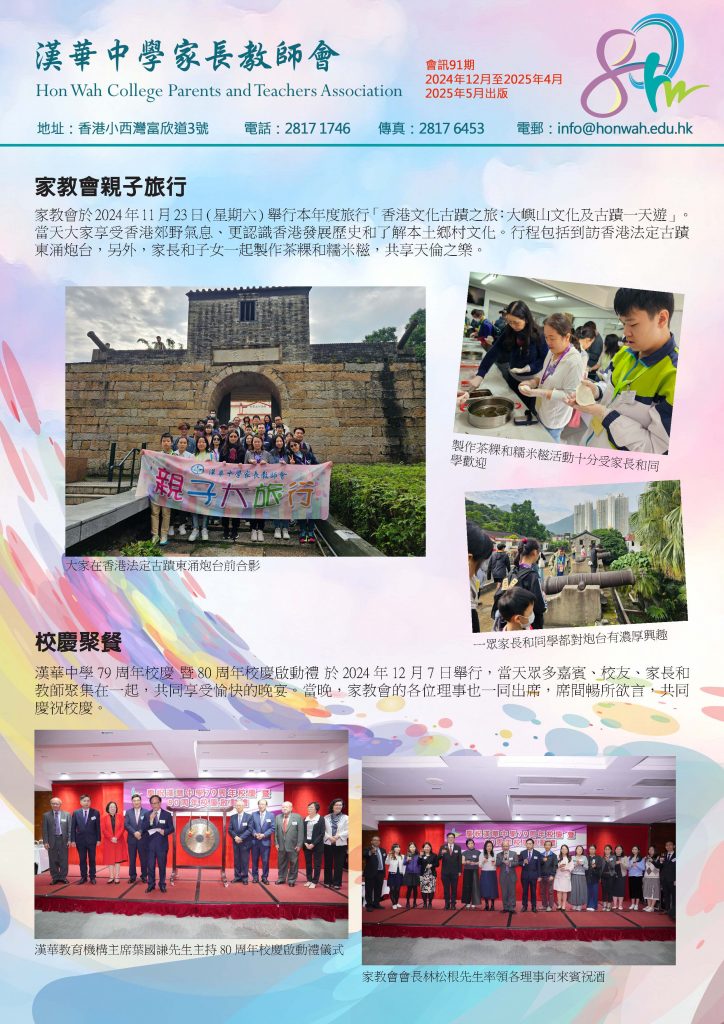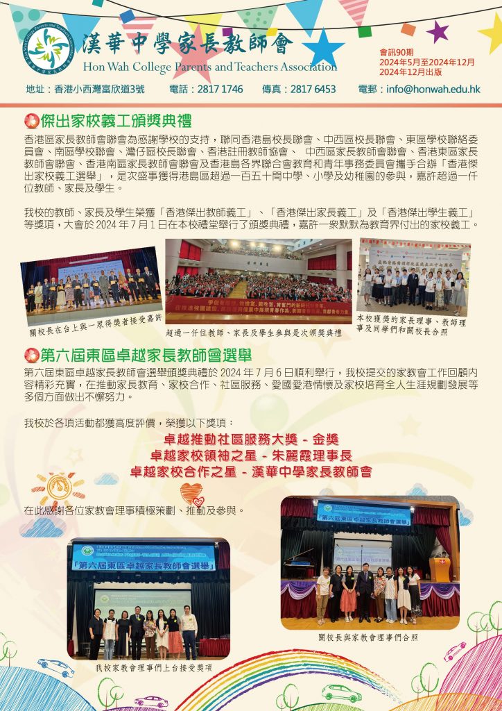 本校家長教師會理事會定期舉行會議,讓各家長理事可討論學校的校務,以及在會議上共同商議為會員舉辦不同的活動。家長教師會為會員邀請了不少專業人士及機構,為會員舉辦了不同類型的家長講座及課程;組織每年的中、小學部的親子大旅行;為提升中、小學生對學習中、英文科的興趣,本會近年都有分別資助中、小學部的中、英文科組織的活動;本會亦有設立最佳進步獎,獎勵學業成績有顯著進步的學生;每年在中學部和小學部畢業典禮上向付出辛勞的教職員,表達謝意 。