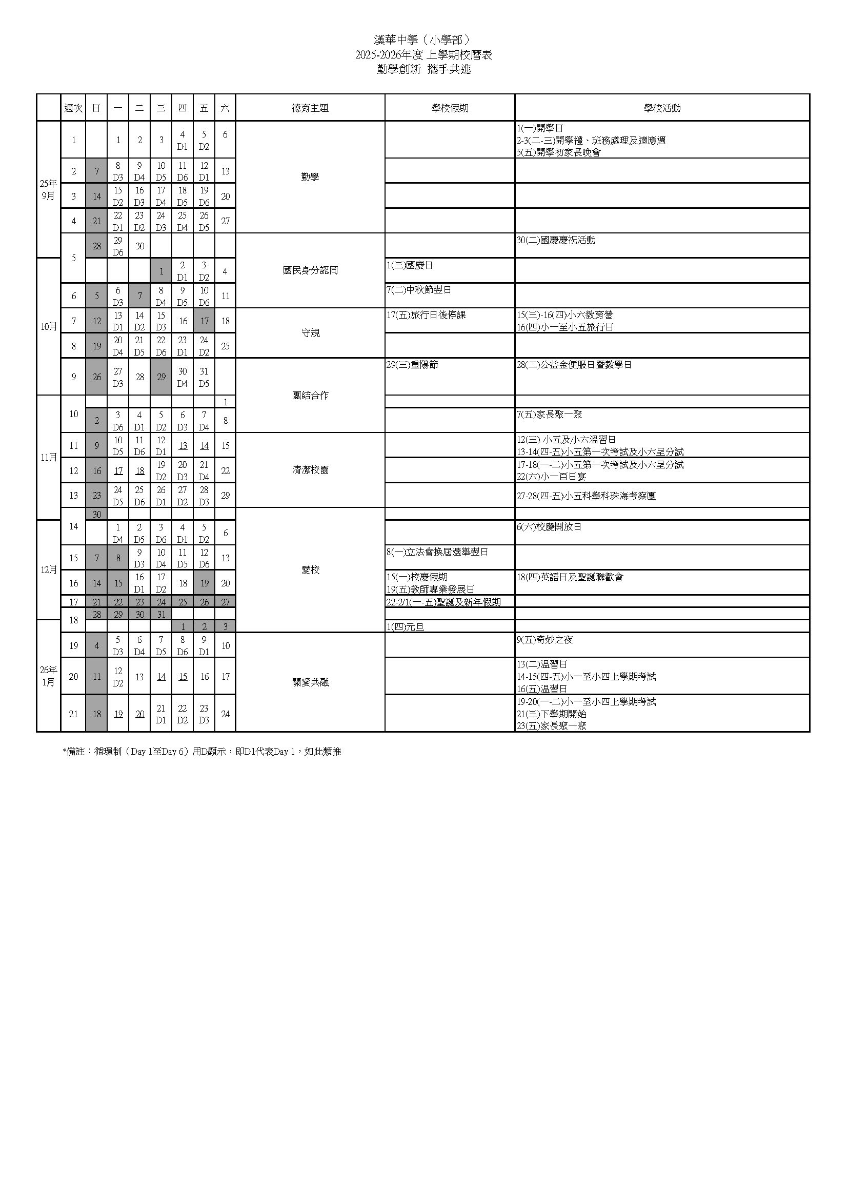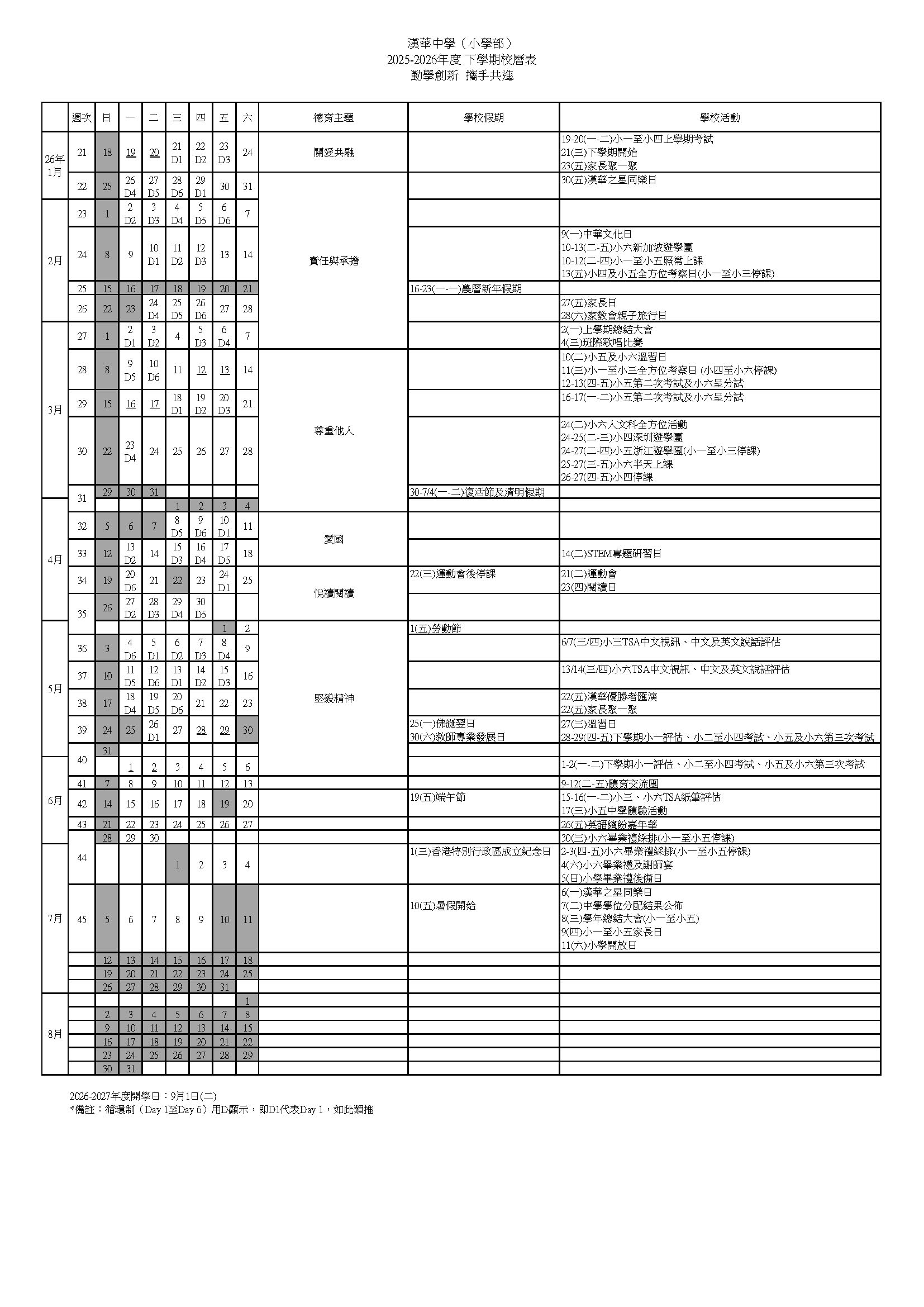 2025-2026年度下學期小一至小五插班生入學申請程序